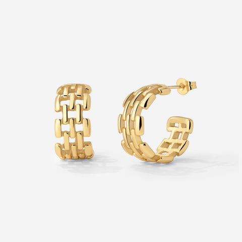 Our “Reverie” Ring is a true gem in our collection and deserves a spot in your jewelry box as soon as possible. The design, inspired by interlocking chain links, is bold and eye-catching, so you can easily wear the ring on its own. It also shines when paired with other rings on different fingers. And psst… for your perfect match, we have the coordinating “Reverie” Hoop Studs!