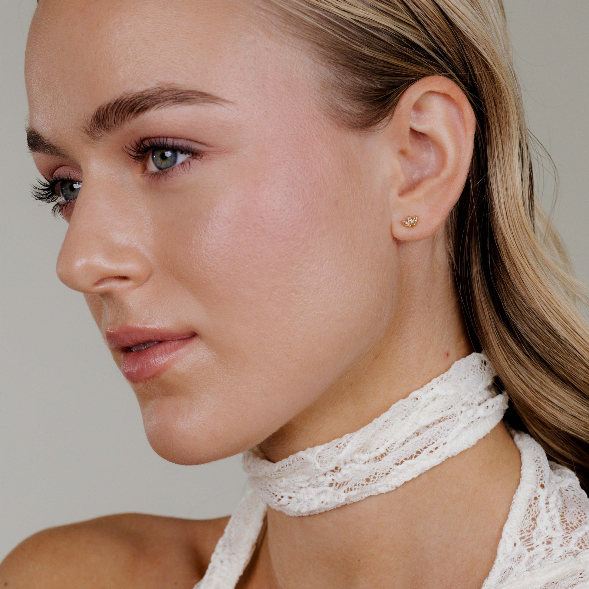 Our 'Royalty' Studs are truly the crown jewel of any of your Ear Candy looks. The trident design and sparkling cubic zirconia stones add a luxurious and elegant touch to these studs. Wear them alone or combine them with our other earrings and piercings to let your creativity run wild and create endless radiant looks.