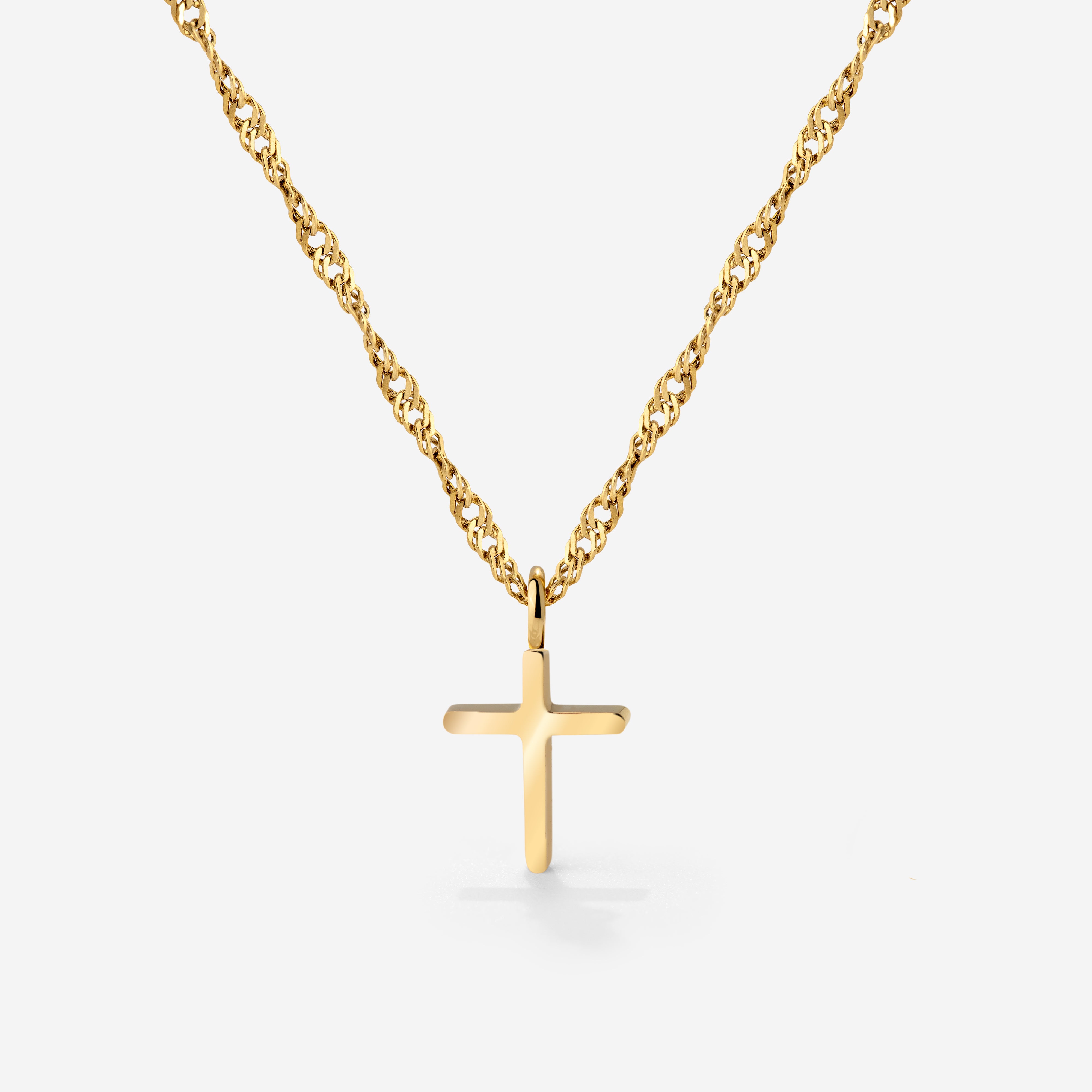 Neben der typisch religiösen Bedeutung kann das Kreuz allgemein auch als Schutzsymbol oder als Zeichen der Hoffnung interpretiert werden und wird in vielen Kulturen getragen. Ob als Glücksbringer oder Erinnerung an deinen Glauben, mit unserer “Saints Cross” Necklace kannst du deine eigene Bedeutung festlegen. An der feinen, gedrehten Singapore Chain wirkt der kleine Kreuz-Anhänger dezent und unaufdringlich und kann somit jeden Tag und für jeden Anlass getragen werden.