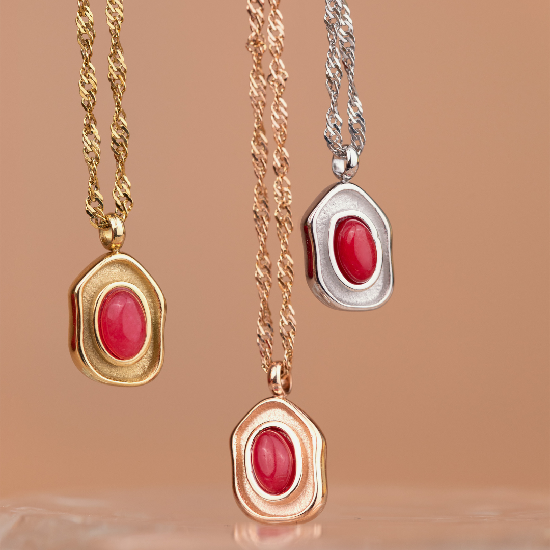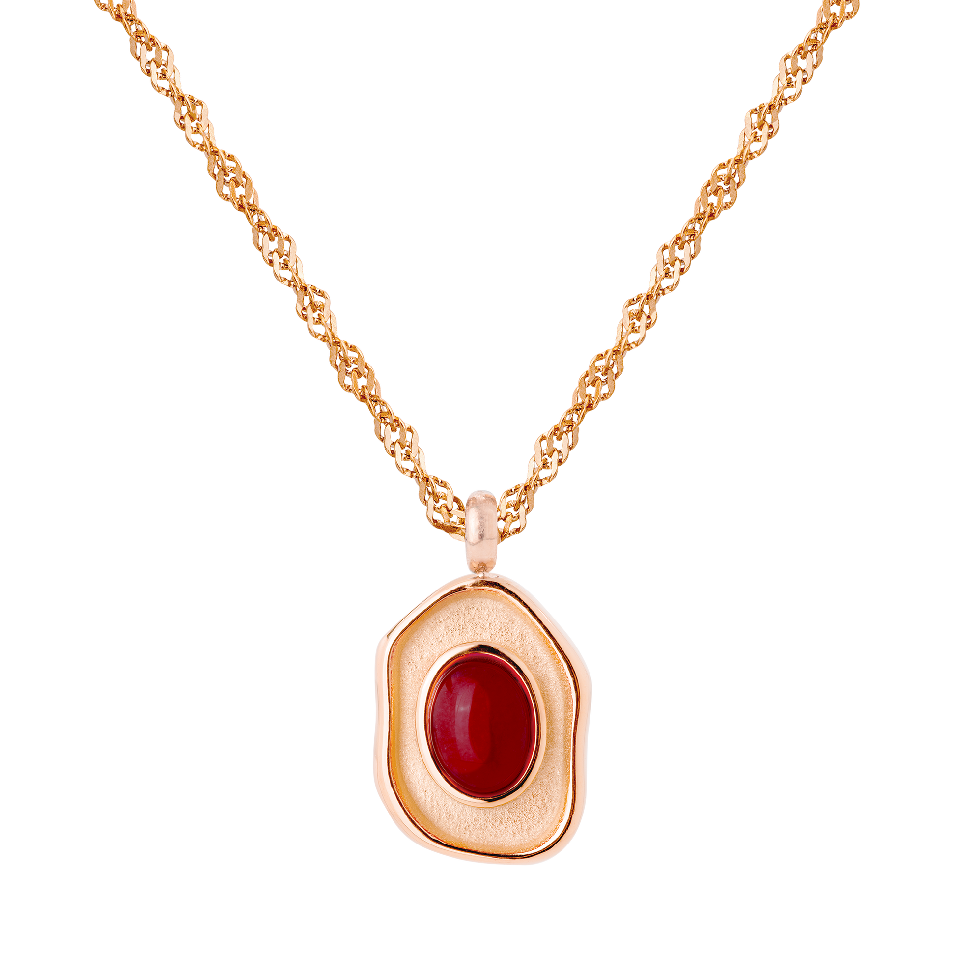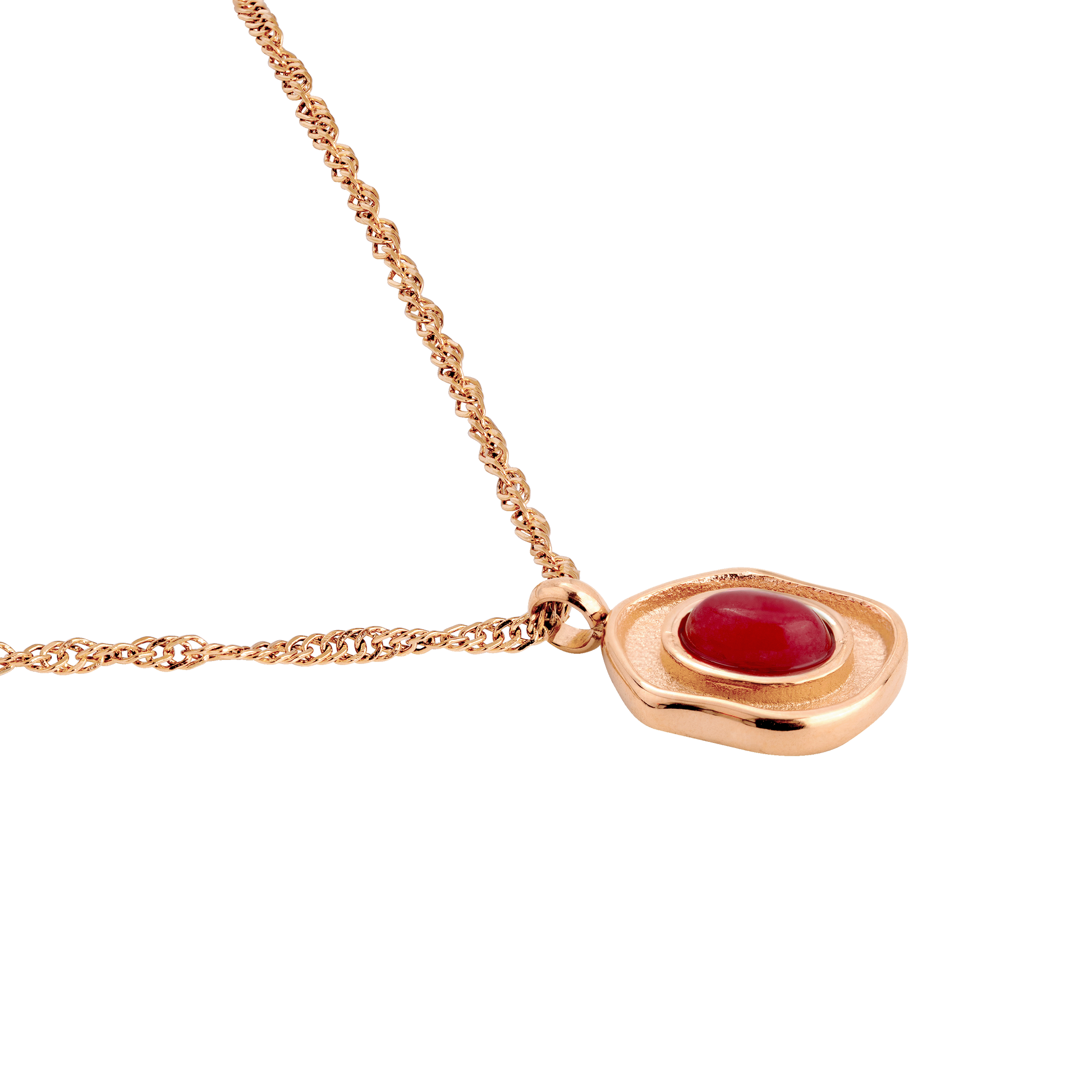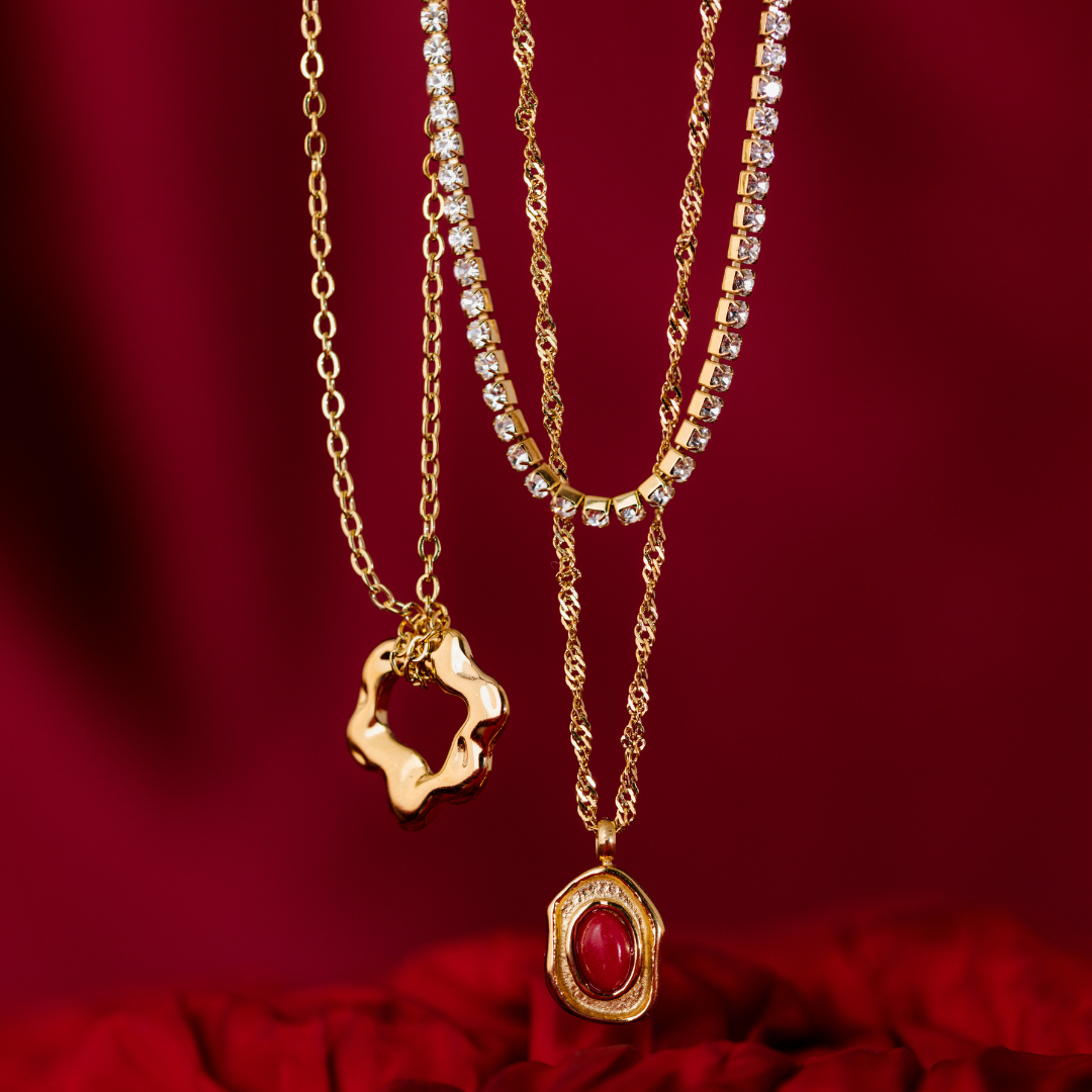 In many cultures, garnet is considered an energy booster, bringing vitality and willpower—and what better way to harness its benefits than by wearing it as a necklace? In our 'Scarlet Treasure' Necklace, a synthetic garnet gemstone is elegantly and subtly incorporated into the pendant, making it a true eye-catcher, especially during the Christmas season. The perfect gift for yourself or your loved ones—for an extra kick of energy during the cold season!