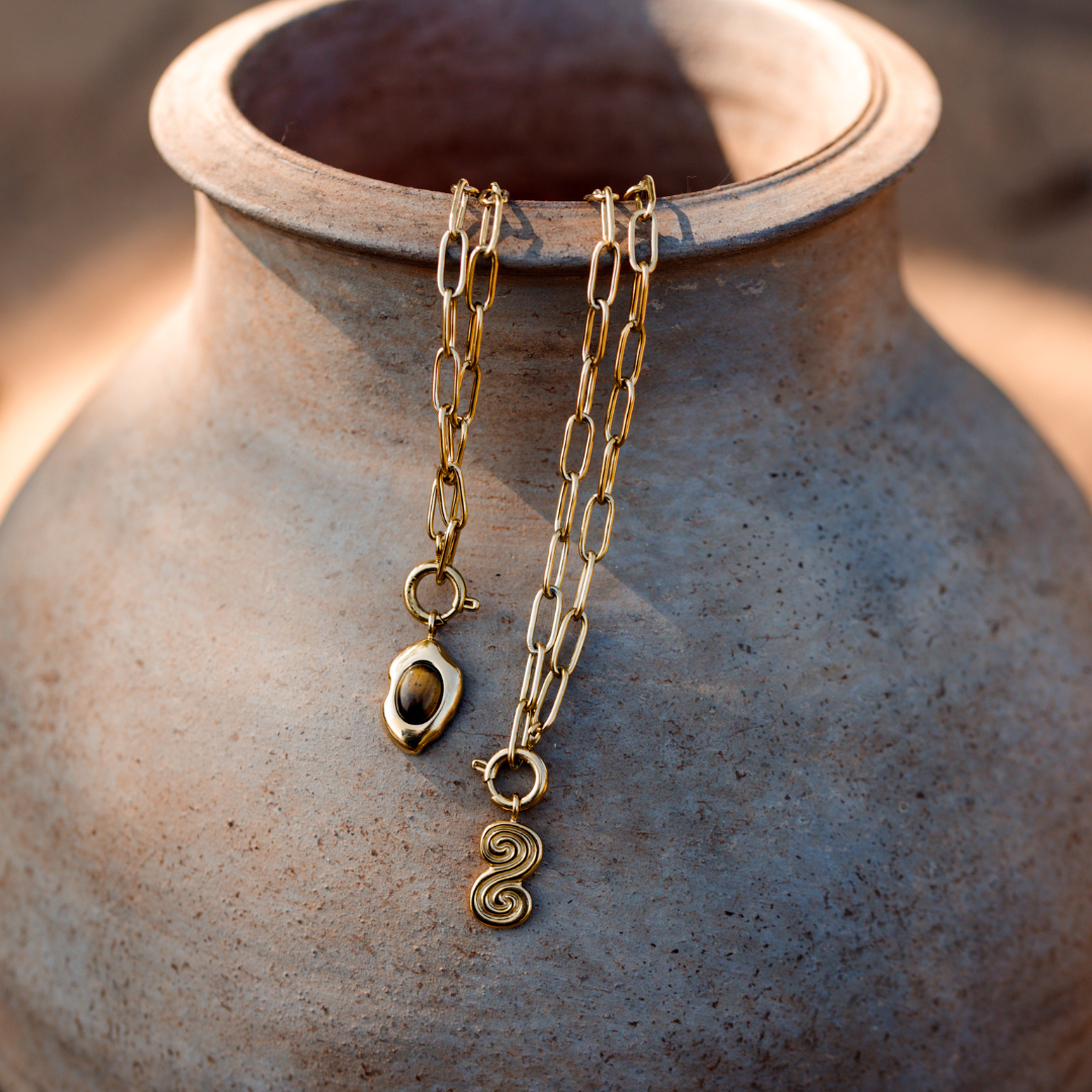 Looking to wear something extraordinary, play with your style, and try something new? Then our “Serpent’s Whisper” Oval Links Necklace Set is just right for you! The pendant on our oval-link charms necklace shines with an s-shaped, flowing design that gives the piece an organic and lively feel. Wear it on its own or pair it with one of our chokers or other necklaces for a fall-inspired layered look – your creativity has no limits!