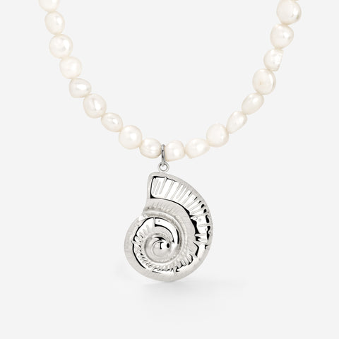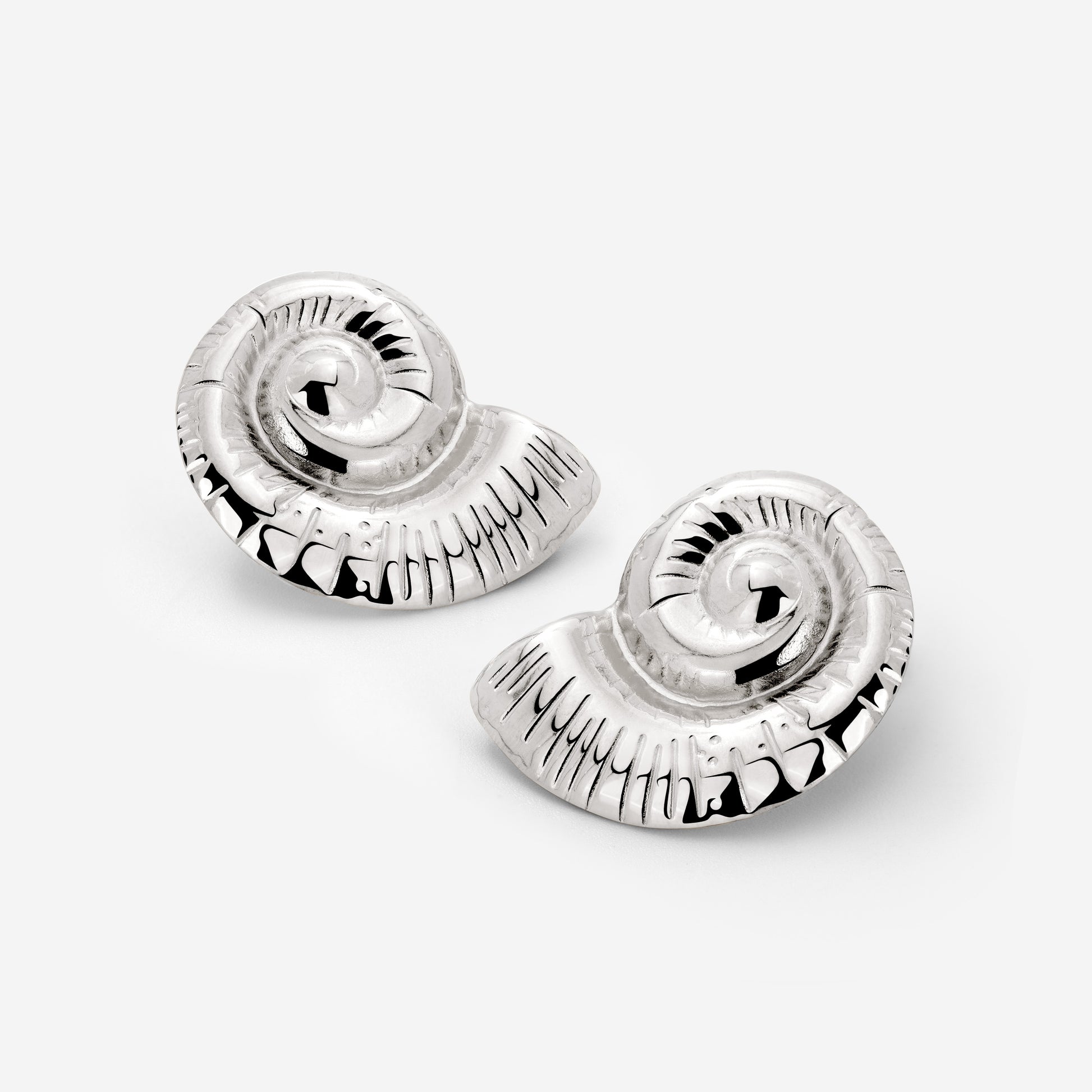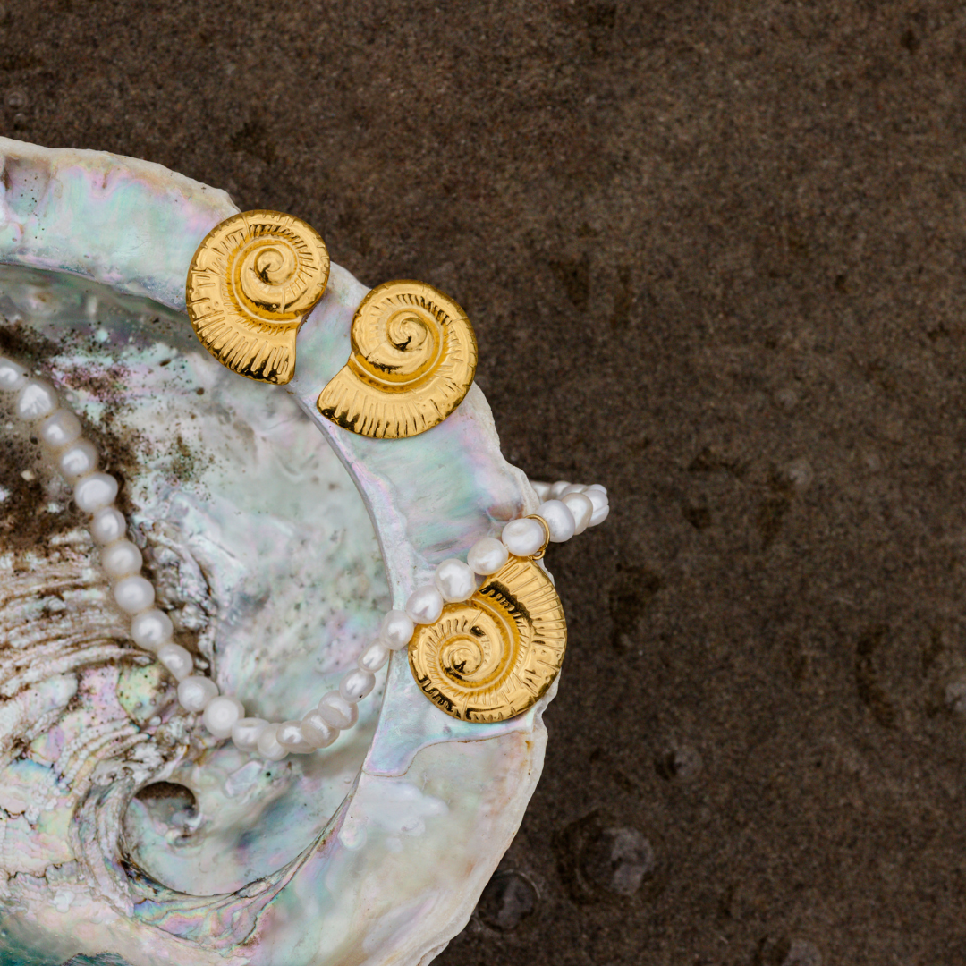 You want bold, you want loud, you want a statement? Then our “Siren’s Spell” studs are your perfect match! These large, eye-catching ammonite earrings are born to steal the spotlight and will have you glowing right along with them. While they shine brightest with your hair styled up, they’re still more than noticeable with your hair down — making them super versatile. Love a matching vibe? Pair them with our “Ammonite Pearl” necklace for a perfectly coordinated look!
