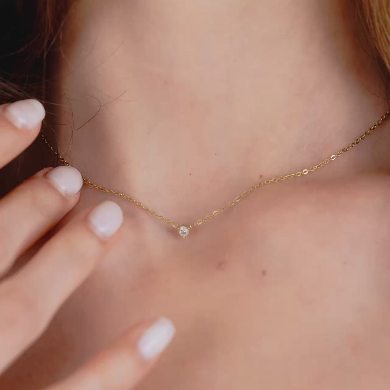 Our 'Solitaire Stone' Choker is the perfect companion for all you minimalists out there. The delicate chain with its subtle, elegant cubic zirconia pendant is a small yet exquisite eye-catcher that completes your outfit without overpowering it. The design is classic and timeless, effortlessly wearable on its own or layered with our other necklaces – truly a versatile piece in your jewelry box!