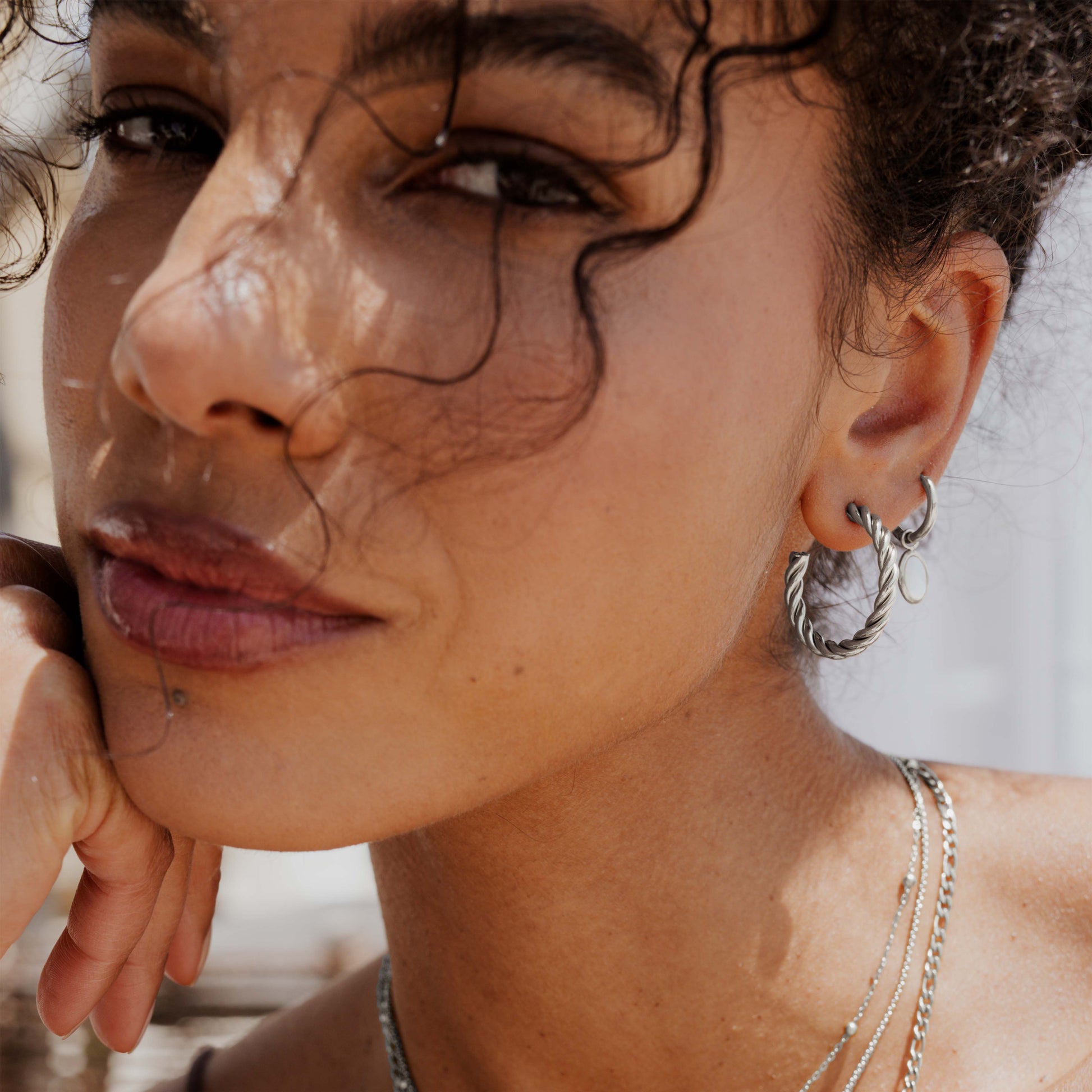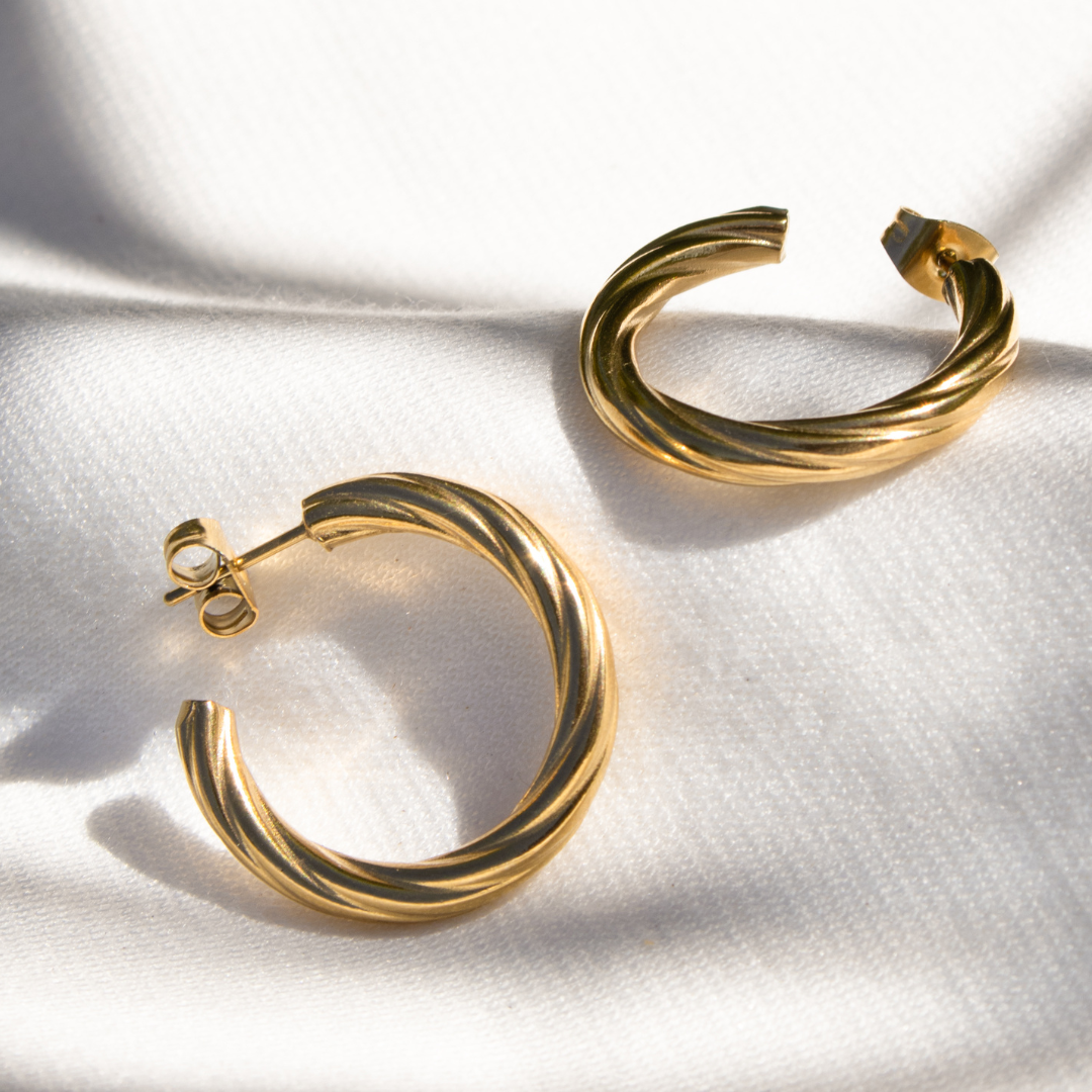 Our Squeeze it Medium Hoop Studs are a twisted highlight on your ear! You just can't go wrong with hoop earrings, so go and get yourself this all-rounder for your look.