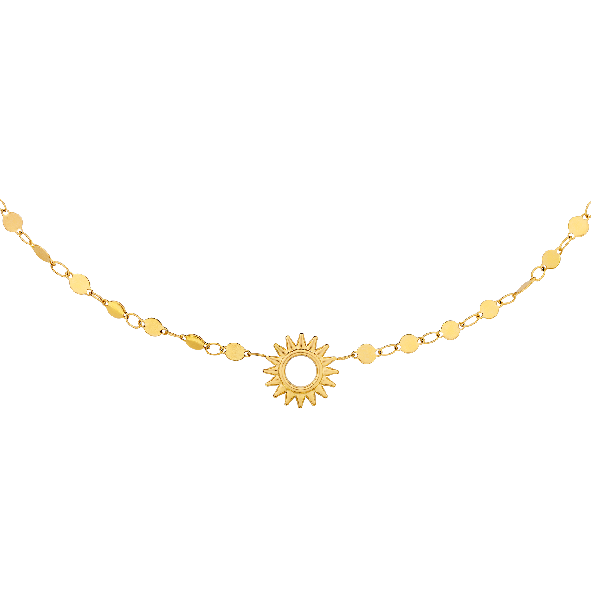Our 'Sunny Side Up' Necklace is a true ray of sunshine. The combination of the sun charm and the necklace made of fine discs creates radiant reflections and pure summer vibes. Let it shine and get this beauty!