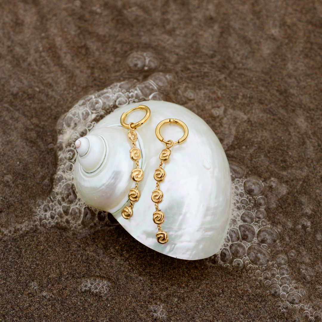 You’re easygoing, love to have fun, and adore cute designs? Then our “Tides of Time” Hoop Set Small is the perfect fit for you and a must-have in your jewelry collection. The sweet, dangling charms with tiny wave-shaped pendants shine brightest when paired with our basic hoops, adding a playful touch to your look. For the perfect match, combine this hoop set with our “Tides of Time” studs — give it a try!