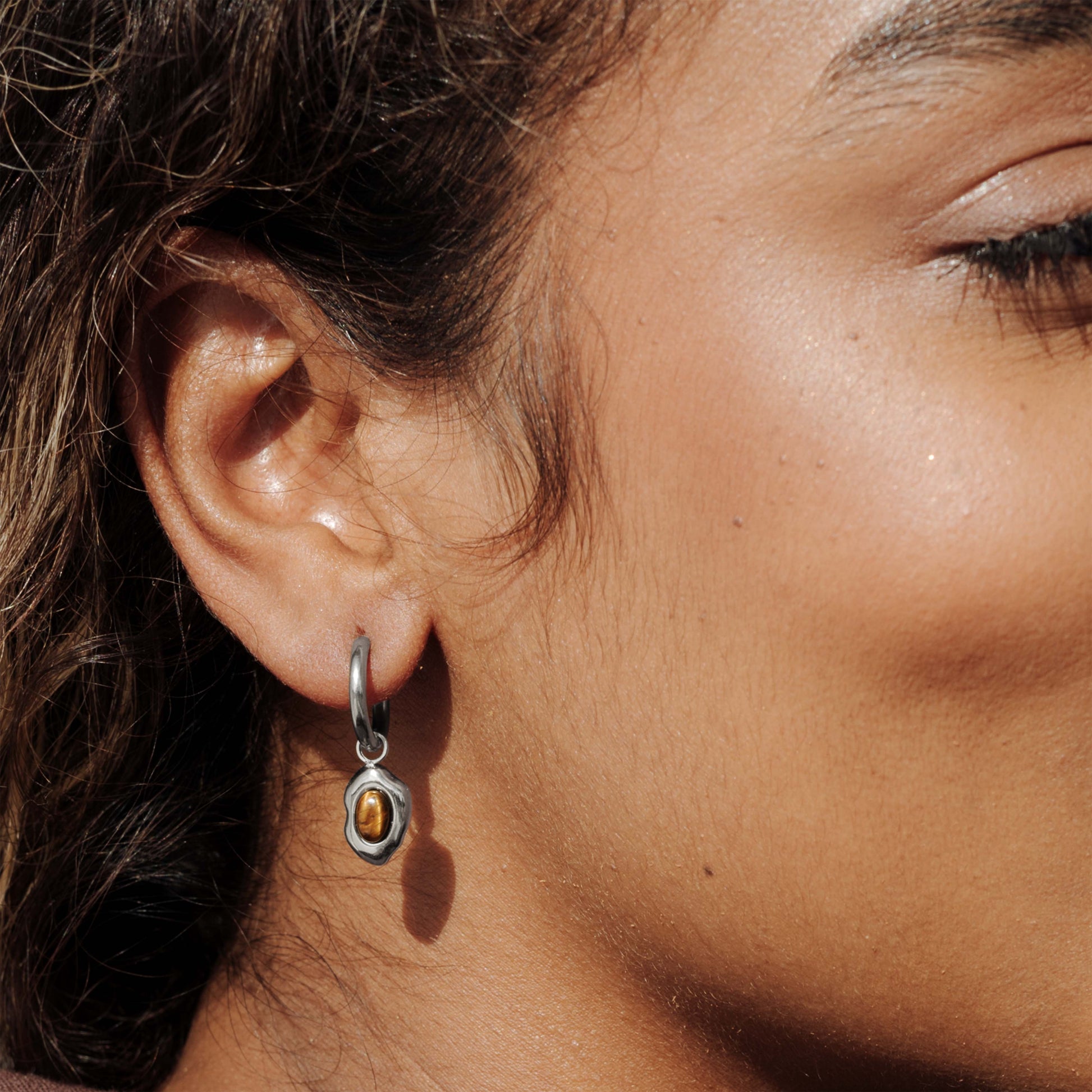 For centuries, tiger’s eye has been considered a healing stone believed to enhance intuition and dissolve mental blockages, especially when it comes to decision-making and creativity. With our “Tiger’s Eye” Hoop Set in size Small, you can always keep this golden-brown gemstone close to you and experience its energy for yourself. Set in an organically shaped frame, the gemstone pairs perfectly with our classic hoops and can also be worn as a matching set with our “Tiger’s Eye” Oval Links Necklace Set. Give it a try!