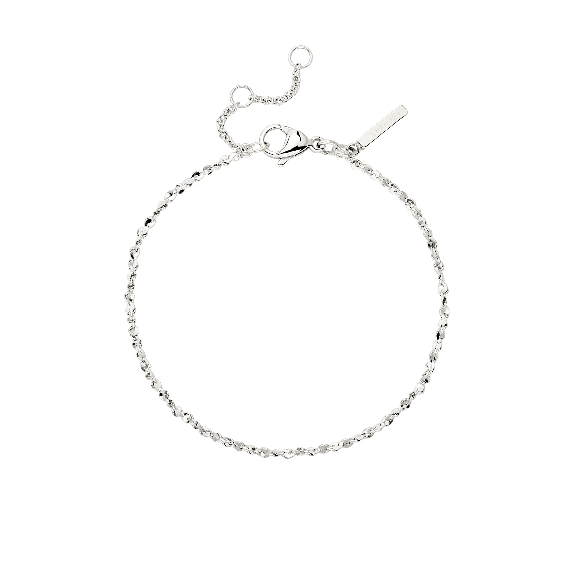 Radiant light reflections and delicate elegance are the hallmarks of our 'Tinsel Chain' Bracelet. The small, fine chain links are twisted and interlinked, capturing light in a uniquely beautiful way. This piece is subtle and timeless, making it perfect for complementing your layered look or serving as a little eye-catcher on its own. Paired with our 'Tinsel Chain' Necklace, you’ll be perfectly equipped for any occasion!