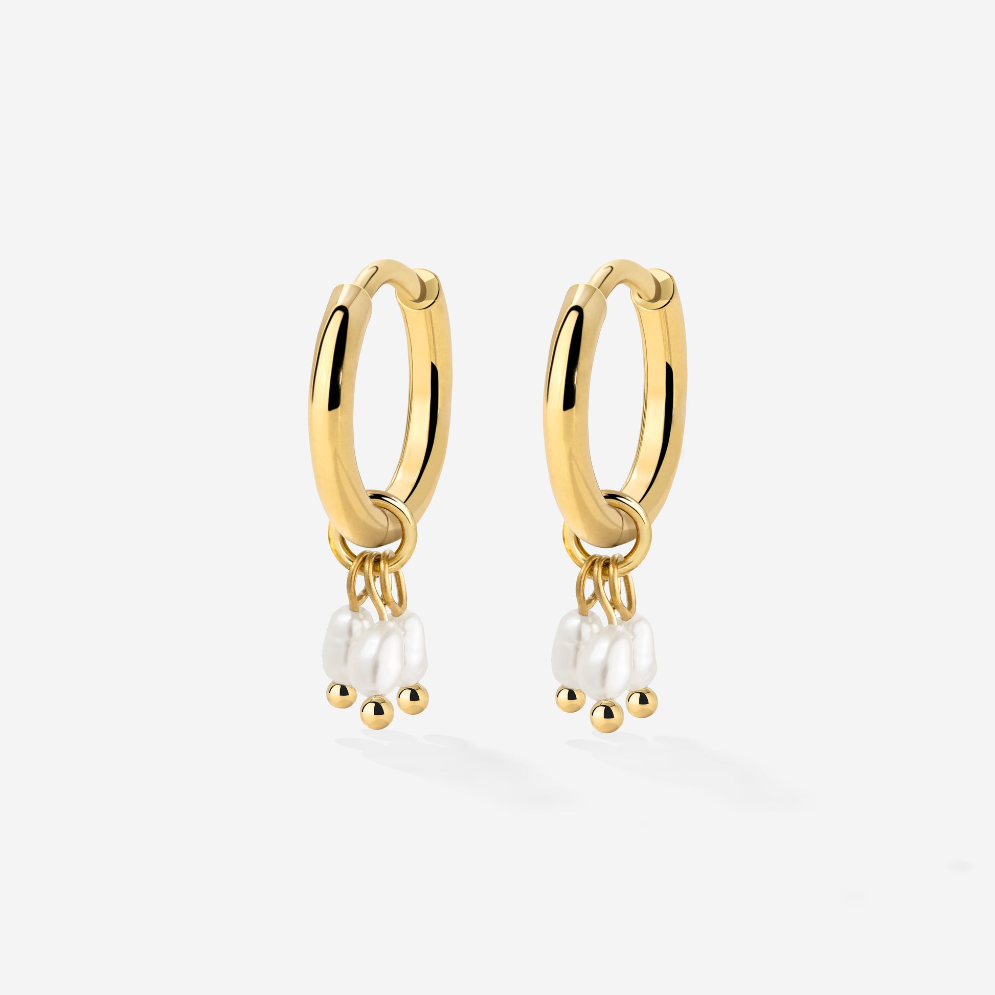 Tres Perlas Hoop Set Gold