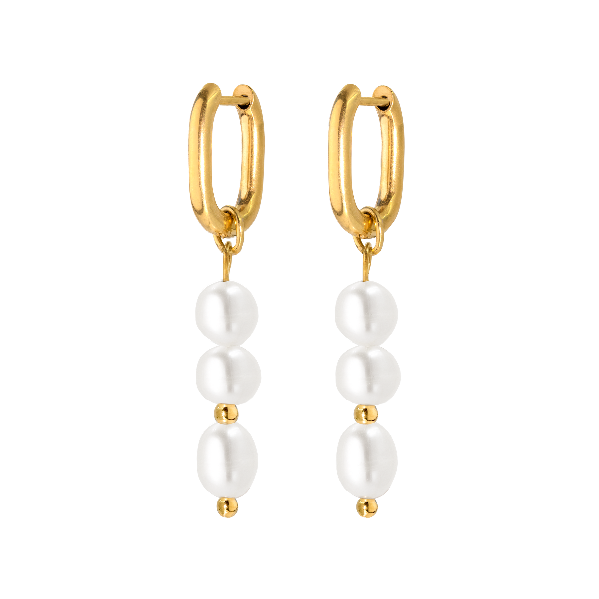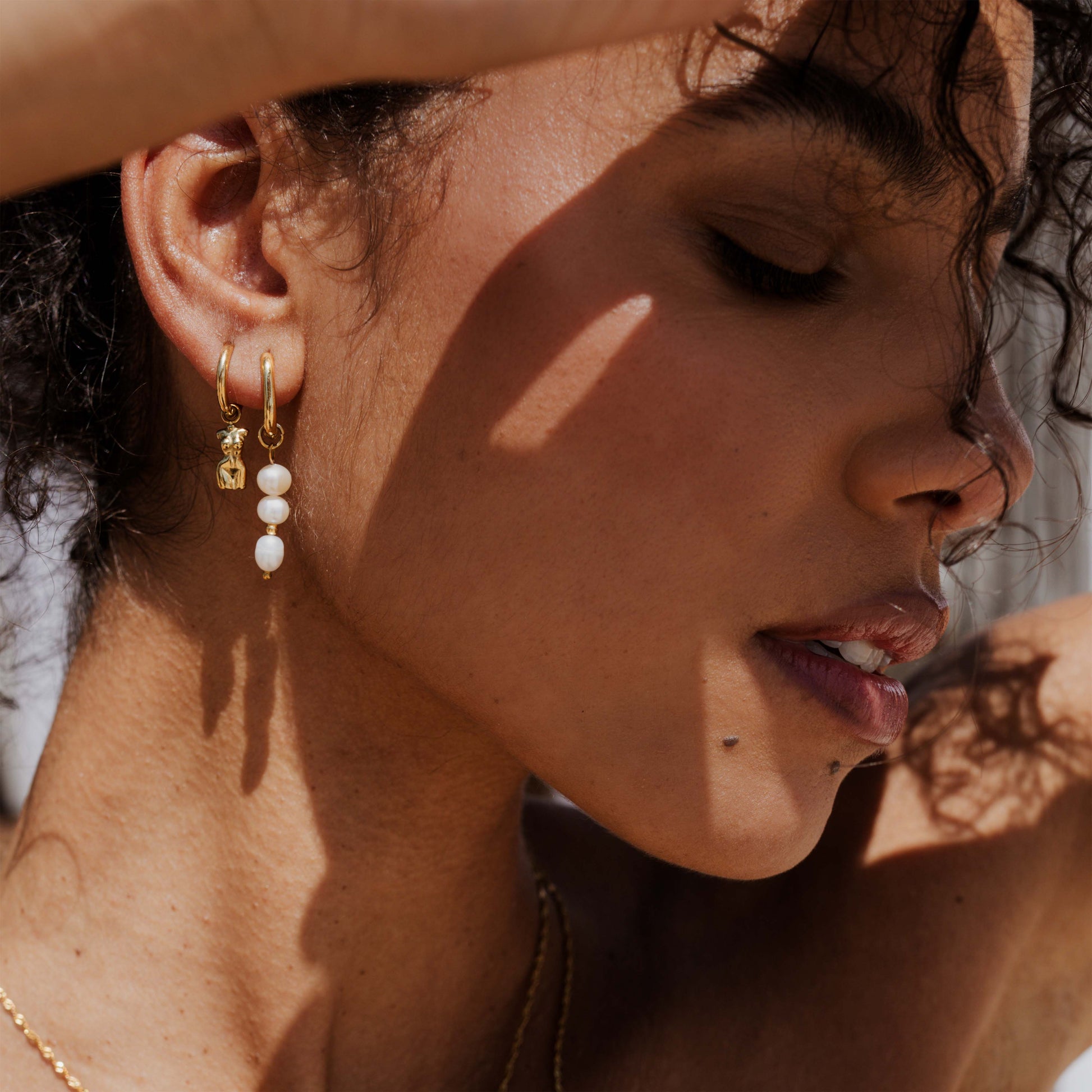 Real freshwater pearls for the next heat wave! We don't think there is one perfect shape. You think so too? Then you'll love our perfectly imperfect Triple Pearl Hoop Set! No two freshwater pearls are exactly alike, yet they are all beautiful and unique in their own way.