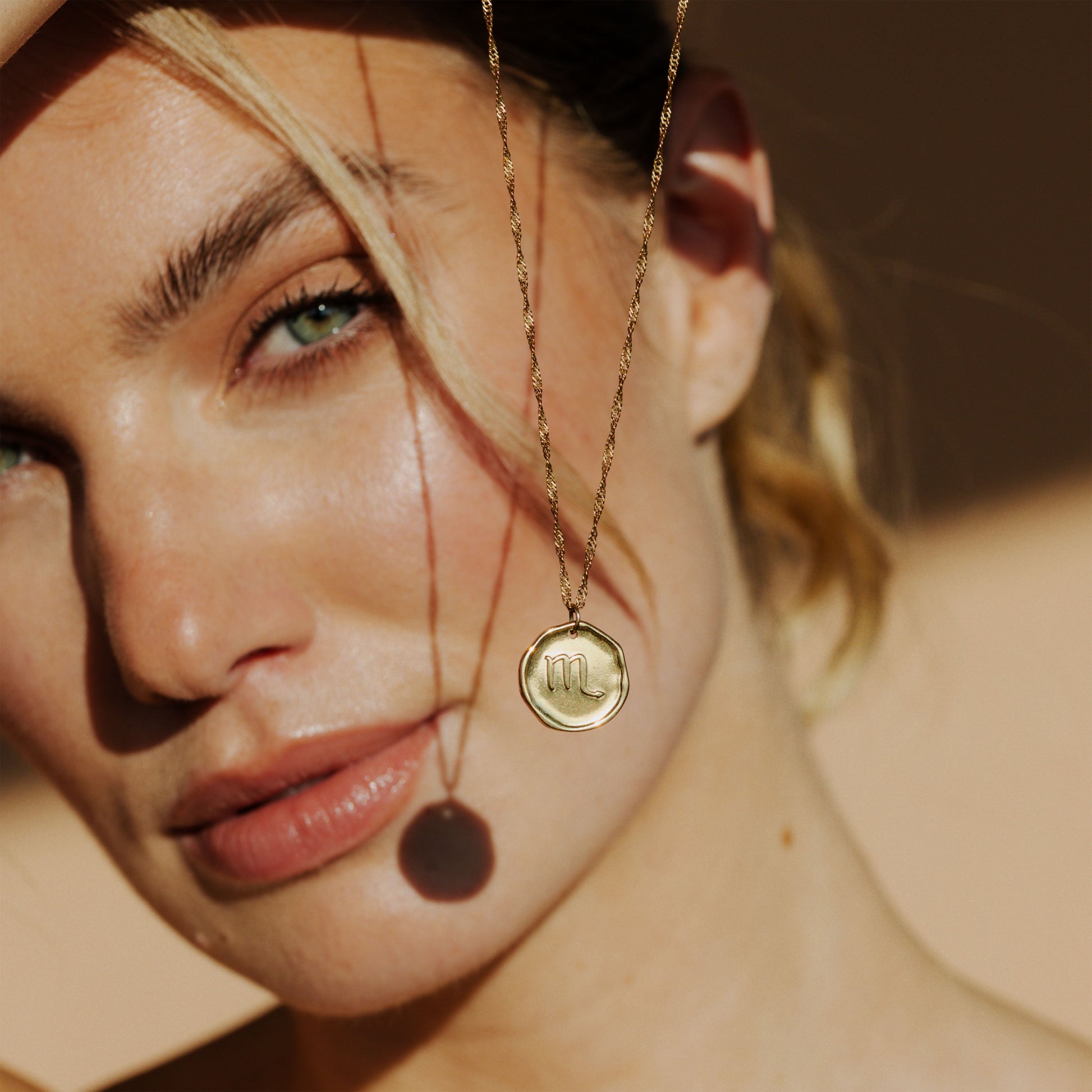 The double-sided pendant of our 'Scorpio / Skorpion' Necklace perfectly complements the elegant and delicate Singapore Chain and can be worn alone or as a layered piece with many other pieces of jewelry. Ideal for yourself or as a magical, personal gift for your loved ones.